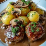 Ein herzhaftes Gericht mit saftigen Bouletten, frischen Champignons und einer aromatischen Waldpilzsoße, perfekt für gemütliche Abende.