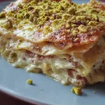 Eine cremige und nussige Lasagne, die Mortadella und Pistazien kombiniert und sowohl im Sommer als auch im Winter für Freude sorgt.