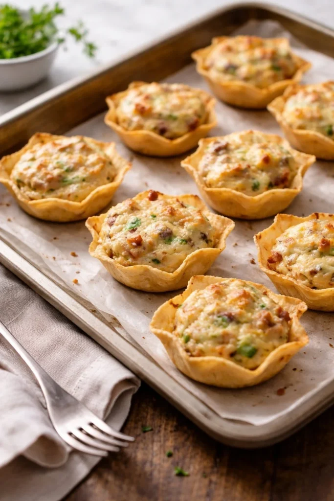Backen: Schiebe das Backblech in den Ofen und backe die Häppchen 15 bis 20 Minuten lang, bis sie schön goldbraun sind.
