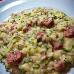 Ich erinnere mich noch an den Sommer, als der Balkon überquoll vor Zucchini und ich unbedingt etwas Warmes, Trostreiches und trotzdem leichtes kochen wollte – so entstand mein Risotto mit Zucchini-Creme. Dieses cremige Risotto verbindet die sanfte Frische der Zucchini mit der rustikalen Würze von Wurst und ist genau das, was ich an hektischen Wochentagen brauche: schnell, tröstlich und ein bisschen luxuriös.